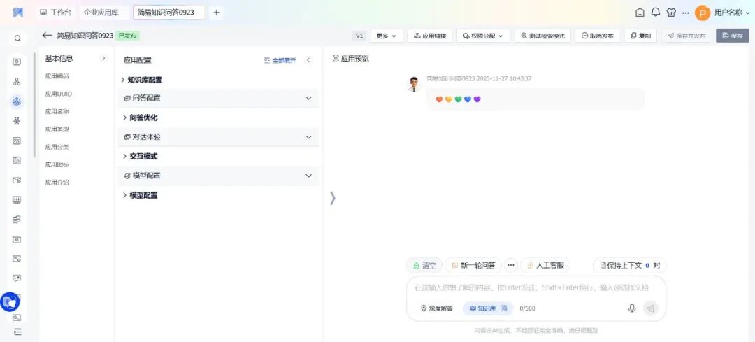 内置应用场景扩展:为满足用户的多样化需求,新版本新增简易知识问答和翻译助手应用,进一步拓宽平台的应用边界;大幅提升平台的多模态处理能力,在音频、视频等多个维度进行了功能扩展,为用户给予更丰富的工具集