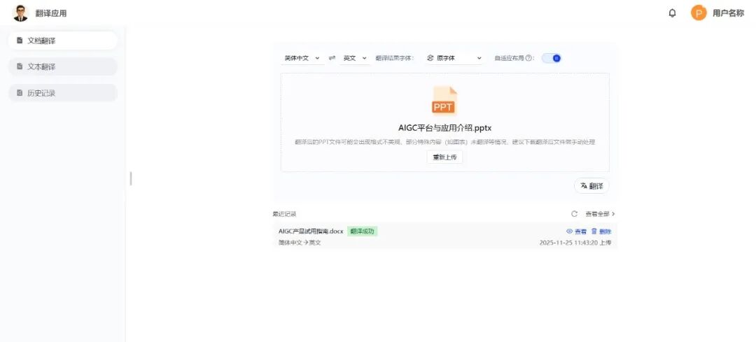 致力于精准高效的跨语言工作。不仅支持文档与文本翻译,更允许指定翻译字体并采用自适应布局,确保翻译结果结构清晰、版式专业。