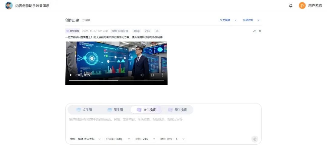 内容创作应用支持视频生成