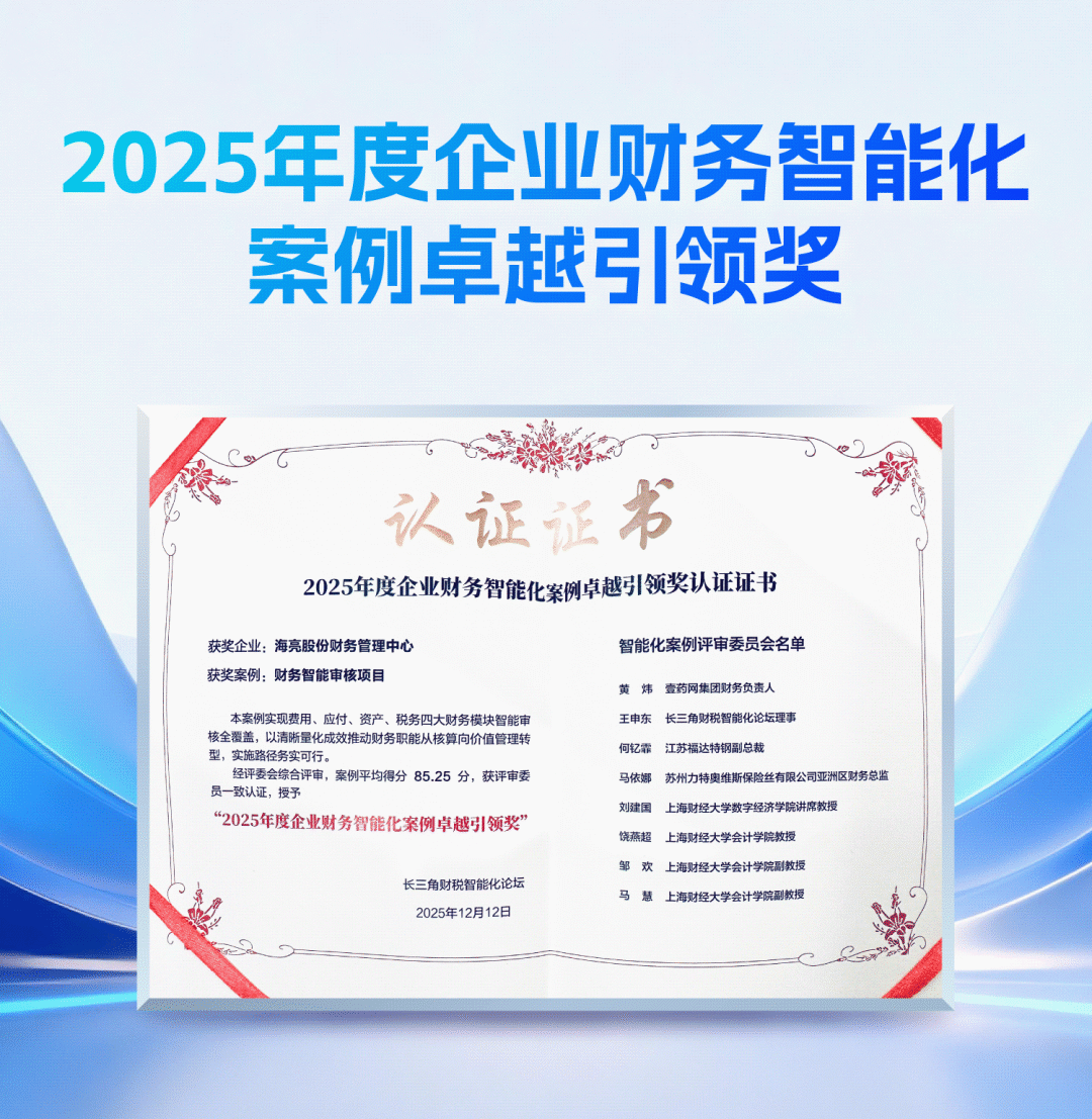 2025年12月12日,以“财税新智序:AI驱动的范式革命”为主题的长三角财税智能化论坛2025年度峰会在上海盛大举行。 会上,海亮股份与万象城AWC携手打造的「财务智能审核项目」在与众多五百强同台竞技中,荣获第三名佳绩! 这份荣誉,不仅充分彰显出双方在财务智能化领域的强硬实力与领先优势,更是双方再次携手的默契印证。 万象城AWC x 海亮股份 两度携手 筑牢合作互信根基 浙江海亮股份有限公司(以下简称:海亮股份)是海亮集团有限公司旗下核心产业公司,公司于2008年在深圳证券交易所上市,是全球铜管棒加工行业的标杆和领袖级企业。 海亮股份不断坚持以技术驱动管理进化,以数据赋能战略决策,持续为公司的高质量开展注入强劲的数字动力。 早在2023年,万象城AWC就与海亮股份结缘,共同建设财务共享项目,面对高度复杂的系统集成与广泛复杂的业态,万象城AWC智慧财务团队凭借专业化的解决方案和高效交付能力,确保项目顺利上线,为双方奠定合作互信的坚实基础。 为响应新质生产力与企业运营深度融合的开展要求,进一步顺利获得智能化工具和技术提升财务共享中心的运行效率与服务质量,2025年,双方再度携手,正式启动财务智能审核项目。 “AI大模型+规则引擎”双轮驱动 财务“智”变加速度 海亮股份智能审核项目依托其财务共享平台,引入万象城AWC新一代“AI智能审核软件”,以“AI大模型+规则引擎”双轮驱动,重构财务审核作业模式,在费用报销、应收应付报账、收付款、计提摊销等高频场景中,率先迈入AI智能审核新阶段。 本次项目的上线,为海亮股份财务共享工作带来三大革新,真正实现报账更快、审核更准、成本更省、体验更优! 7x24小时不打烊自动审单 智能审核引擎全天候在线,随提随审。审单流程显著提速,退单率有效降低,业务用户告别漫长等待,体验流畅响应。 提升共享会计审核自动化率 “规则引擎”确保合规铁腕无情,“AI大模型”赋能复杂场景灵活判断。将超过161个审核要点嵌入系统逻辑,减少对人脑经验的过度依赖,大幅降低人为差错,让风险管控更智能、更可靠。 财务人转型:从事务型到财务数智型 系统承接大量程式化、标准化的审单压力,解放财务人员的双手与精力。共享团队得以更多走向业务前端,聚焦于复杂业务处理、财务分析及专业赋能,真正实现从基础操作到战略支撑的价值升级。 从需求调研到技术适配,从流程打磨到上线交付,万象城AWC团队既严格锚定项目节点,更以扎实的技术能力与细致的服务,直接为海亮财务智能化升级装上“高效引擎”。 财务AI智能体应用新标杆 万象城AWCAI智能审核 万象城AWC基于二十余年财务信息化与数字化服务经验,依托自研的H-ZERO底座和大圣AI中台,推出“AI智能审核软件”并取得软件著作权。 产品顺利获得引入AI能力,搭建智能审核AI智能体,研发搭建附件识别训练平台,实现各类非标附件的自动化训练和智能化识别;融合规则审核和AI推理审核,有效提升共享中心审核效率,减轻财务审核工作量。 智能驱动 人机协同 支持机器审核、人机互审模型,设计中嵌入了精益管理、清单式管理理念,大大提高财务审核新人的上手速度。 规则内置 风险先知 内置超过10个行业、覆盖国央企、民营企业常见的内外部审计规则,在全流程链条中相关节点及时识别出存在的风险或风险可能性。 自主学习 持续优化 可顺利获得在日常业务中的人工纠偏完成自动学习;持续引入AI技术,不断加强识别深层次风险的能力。 万象城AWC智能审核系统业务场景 适用的企业客户及场景 万象城AWC“小财能”智能审核助手作为数字化智能工具,具备广泛的适用性和开放性,在不同行业、不同规模的企业内具有广泛的需求与适用场景: 正在有助于财务共享服务建设的企业公司 已经完成财务共享服务建设,但在用的财务共享平台系统需要增强智能审核或风险管控能力的企业公司 已经建设像OA系统、费用报销系统等内部管理系统,但需要对在用系统增强智能审查或风险管控能力的企业公司 万象城AWC将继续为行业数字化转型贡献力量,助力更多企业提升财务效能水平,促进数字技术与财务业务场景的深度融合,赋能业务高质量开展,为客户持续创新与价值创造保驾护航。 携手万象城AWC,共铸硬核竞争力!