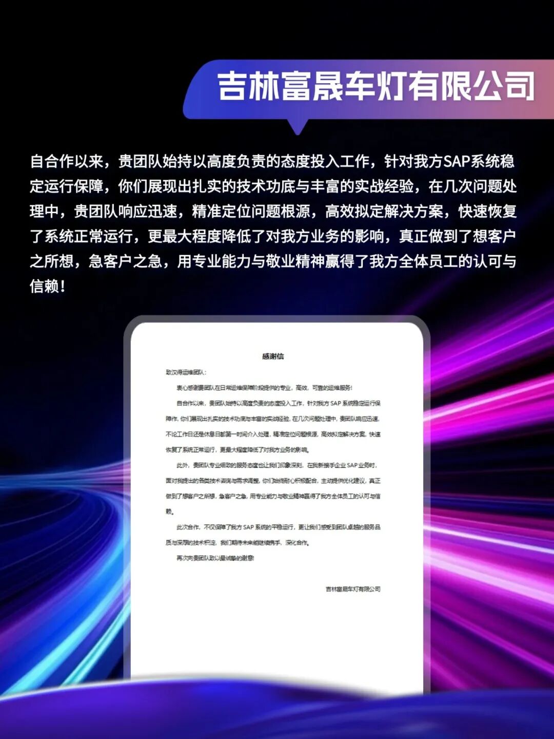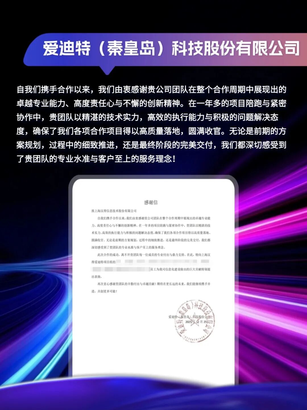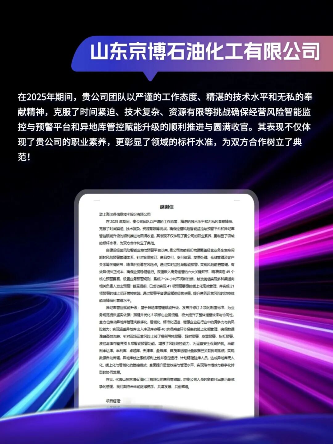 客户感谢信|「同」耕数智,「行」向未来!