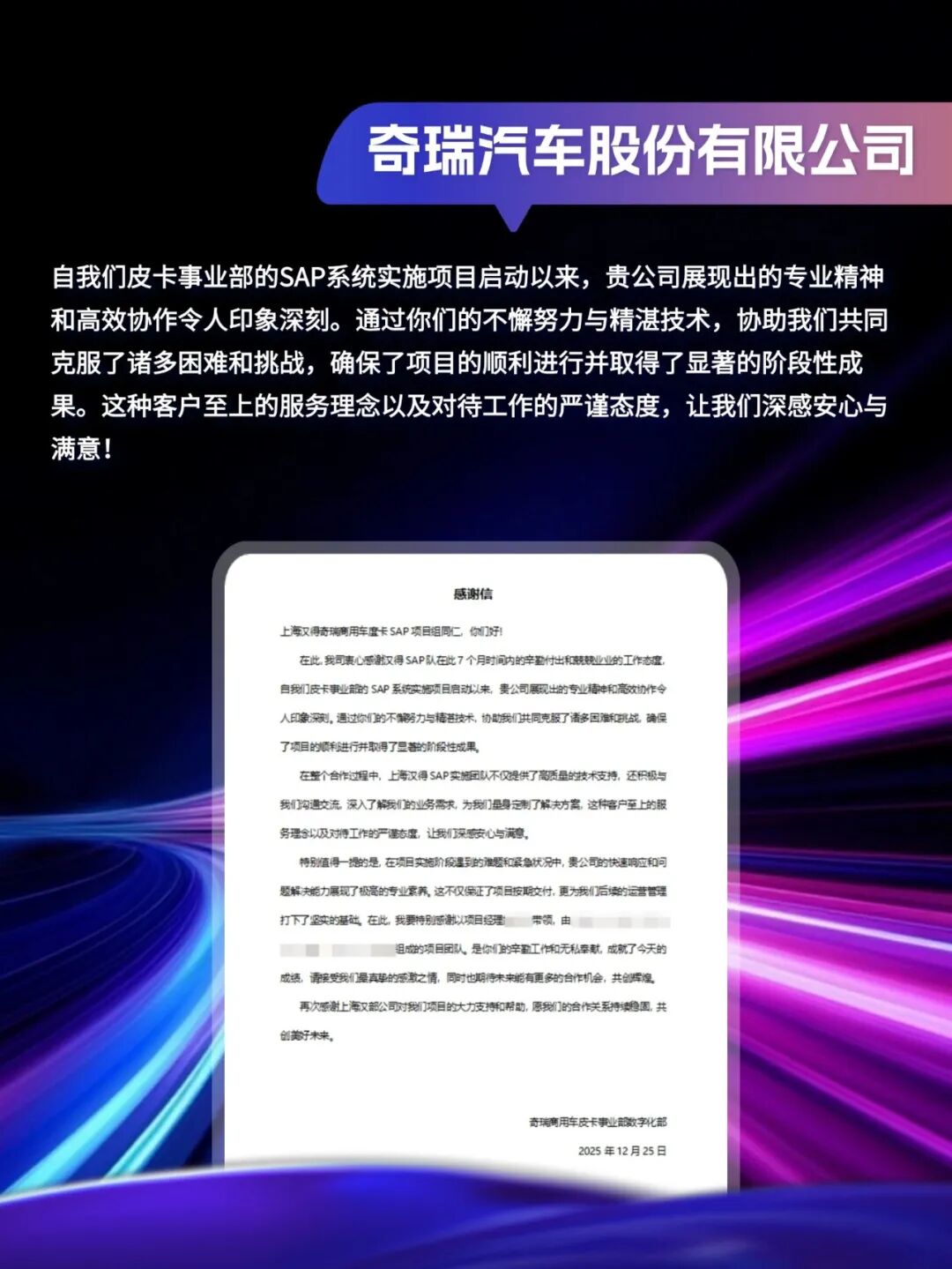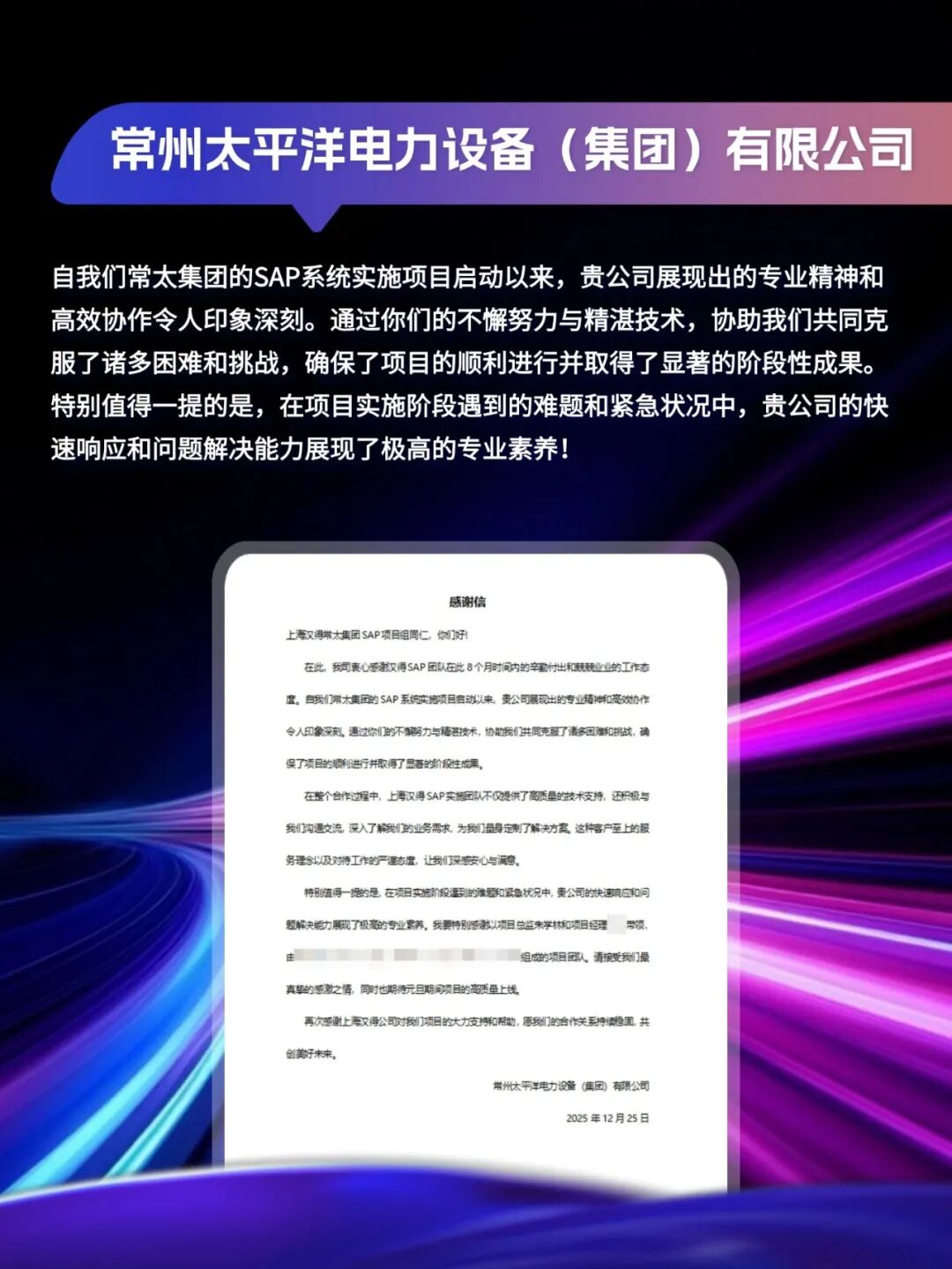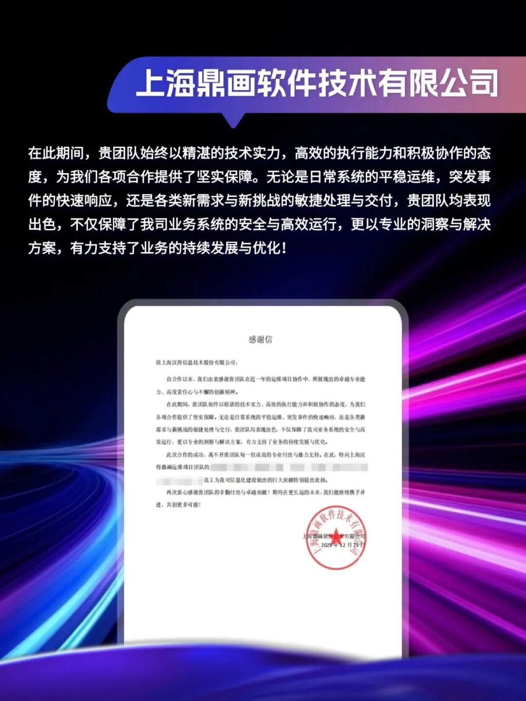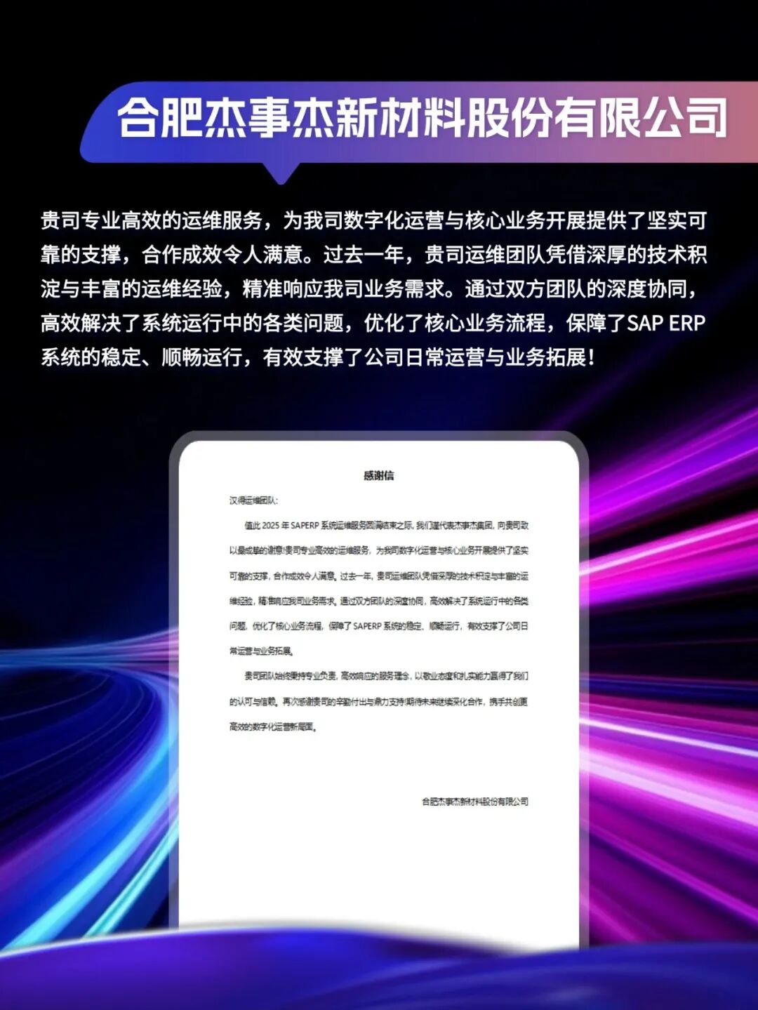 客户感谢信|「同」耕数智,「行」向未来!
