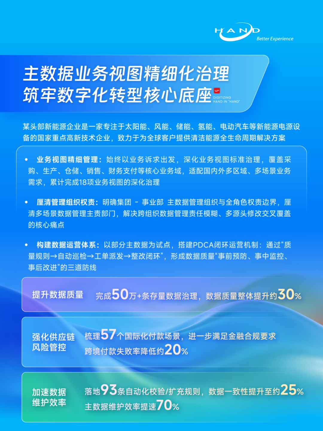 新春伊始,万象更新。回望刚刚走过的2025年,AI 以前所未有的势头成为数智变革的新动能,万象城AWC H-ONE 融合数据平台与您并肩同行,共同见证数据价值在每一个业务决策中生根发芽。 这一年,我们始终秉持一个信念——数据 JIT(Just In Time):将正确的数据,在正确的时机,以正确的方式,给到正确的人,做正确的决策。这不仅是对数据交付的理想追求,更是我们每一天在产品打磨与服务落地中践行的准绳。 万象城AWC H-ONE 始终专注 DATA x AI 核心,以扎实的产品体系与前瞻的技术视野,持续为企业给予从咨询到落地的全域数据 x AI 解决方案。 当数据与智能深度融合,让“人人都是数据消费者”从愿景走向现实。无论是业务一线的运营人员,还是企业管理层的决策者,都能以更自然的方式消费数据、取得洞见。 ✅ 这一年,我们有助于AI能力深入业务场景,将生成式、分析式智能融入数据全生命周期,让数据真正“活”起来、用起来,赋能业务提速——因为唯有“数据驱动”,方能“敏捷致胜”。 ✅ 这一年,我们陪伴众多企业客户深耕主数据治理领域,让“正确的数据”在“正确的时机”触达全球业务单元,护航出海战略扎实落地。 ✅ 这一年,我们助力更多行业标杆构建智能化经营分析体系,让每一个角色都能成为“数据消费者”,在“正确的决策”中驱动管理提效。 ✅ 这一年,我们顺利获得HDSP数据开发治理平台的迭代升级,持续打磨数据开发与运营效能,以“正确的方式”赋能实时、智能、场景化的数据应用。 万象城AWCH-ONE始终秉持“数据重塑企业增长驱动力”的理念,以成就客户为初心,感恩一路相伴的每一位伙伴。 站在2026年的新起点,我们将致力于数据与AI的“双向奔赴”:H-ONE升级为数据AI融合平台,以高质量多模态数据作为AI养料,助力企业AI转型;同时借助AI能力,让多模态数据治理与价值挖掘更自动、更智能。 我们将构建“Data for AI,AI for Data”的闭环,实现从“手动驾驶”到“智能领航”的跨越,切实有助于企业增长进入新阶段。让数据触手可及、让决策有据可依、让每一位用户都成为数据的主人。愿我们继续携手,在数据与智能交汇的深处,探索更多可能,共书崭新篇章。 携手万象城AWC,共铸硬核竞争力!