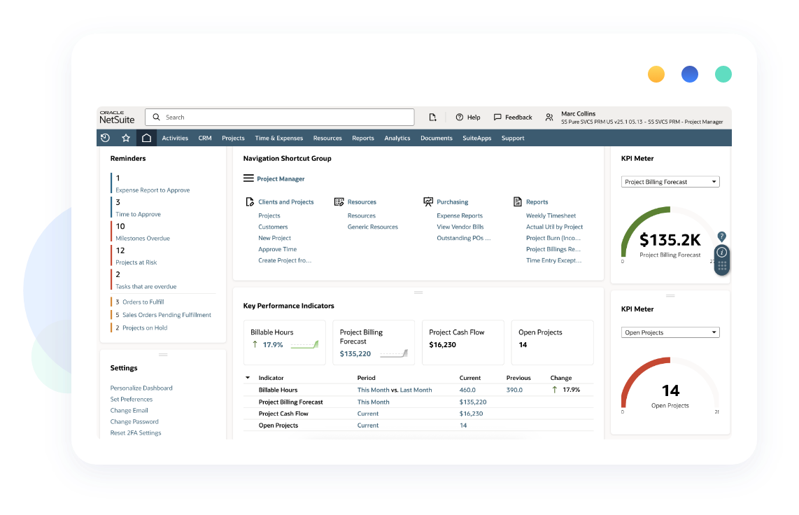 顺利获得一个统一的系统全面洞察后端财务流程和前端服务运营,从而提高项目利润率、改善可计费资源利用率,同时根据强大且富于洞察的业务指标制定数据驱动的、明智的战略和战术决策