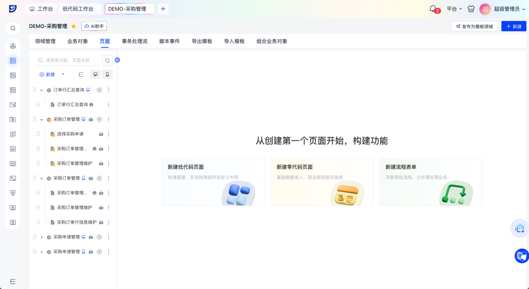 智能生成 | 对话调优 | 对象速建 | 逻辑无码