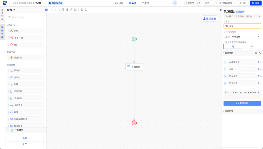 事件流多行查询节点、详情查询节点新增支持配置查询参数条件关系,事件流删除节点新增支持配置删除参数及删除参数条件关系