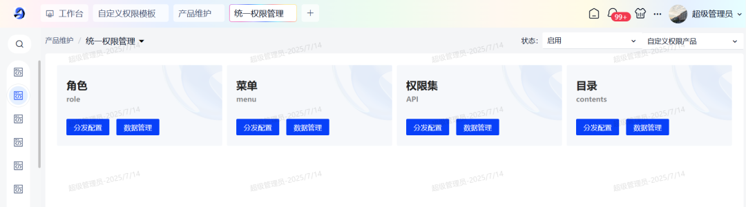 产品使用自定义权限模版