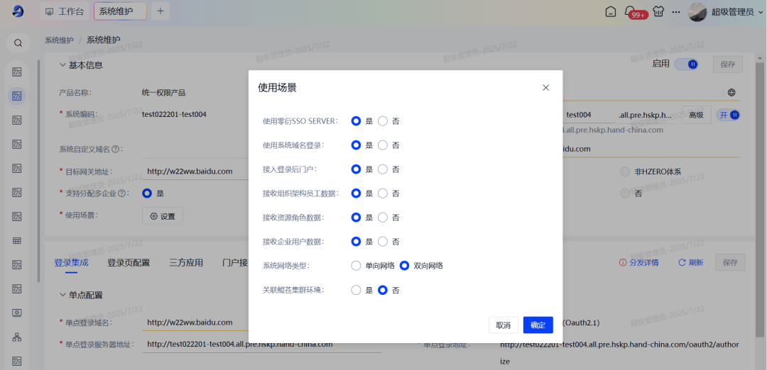 新建/编辑产品和系统时,支持勾选使用场景,根据使用场景显隐部分功能和字段,使页面更加简洁,方便用户操作,提升用户体验。
