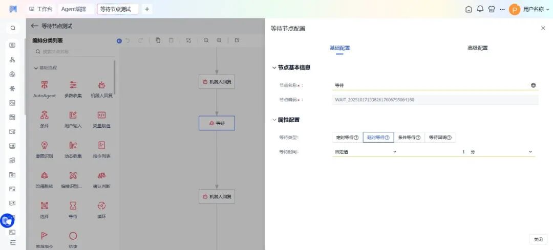 • 定时等待:可在指定时间点自动执行后续流程,可用于定时推送等场景