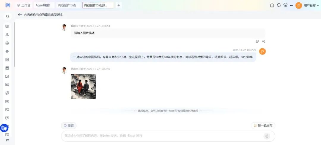 赋予Agent“视觉创作”能力,支持文生图和图生图两种创作类型。