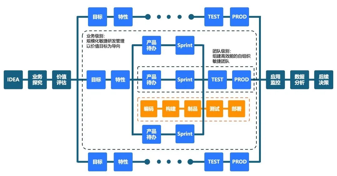 拉通从需求、设计、开发到测试、交付的全链路,建立敏捷透明的协同机制