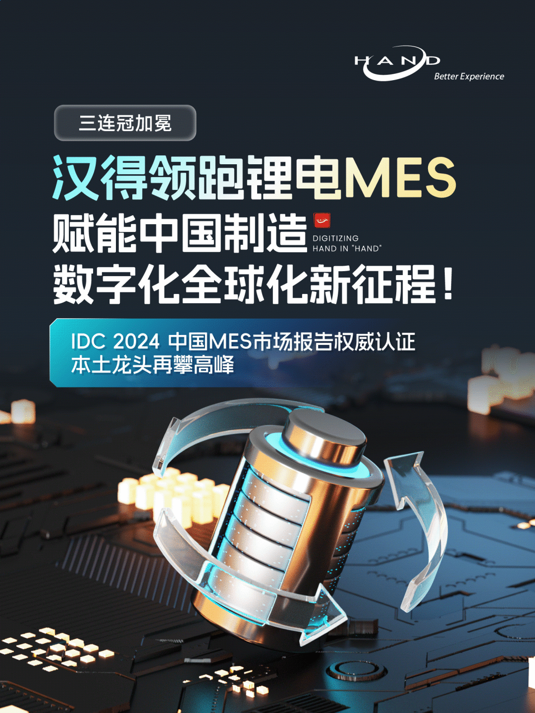 近期,全球知名市场研究组织IDC正式发布《中国MES市场份额,2024:格局重塑》报告,凭借在锂电池行业的深度深耕与技术突破,万象城AWC信息以48.6%的绝对市场份额,陆续在第三年蝉联锂电池MES解决方案市场第一宝座,持续领跑行业开展。