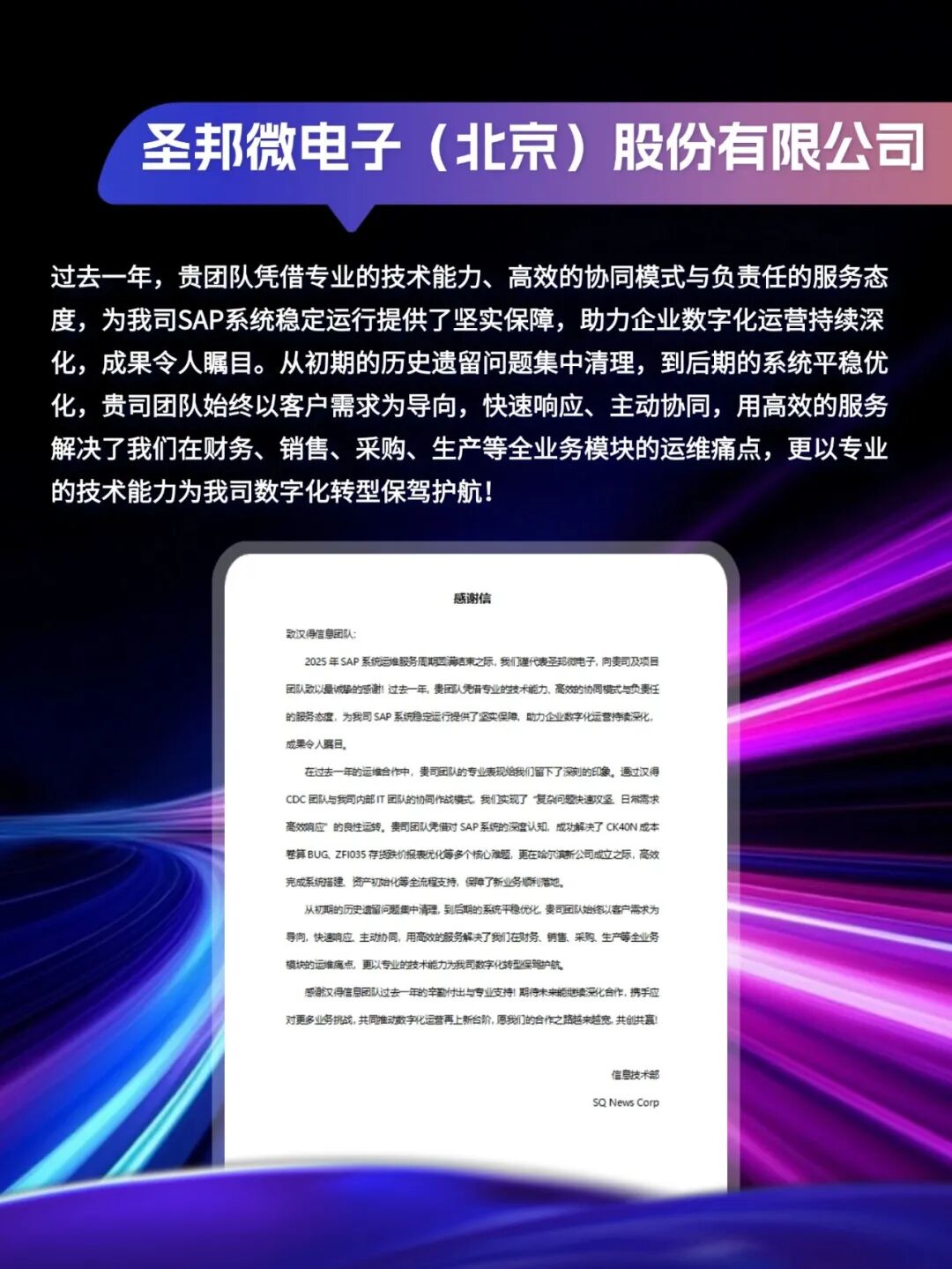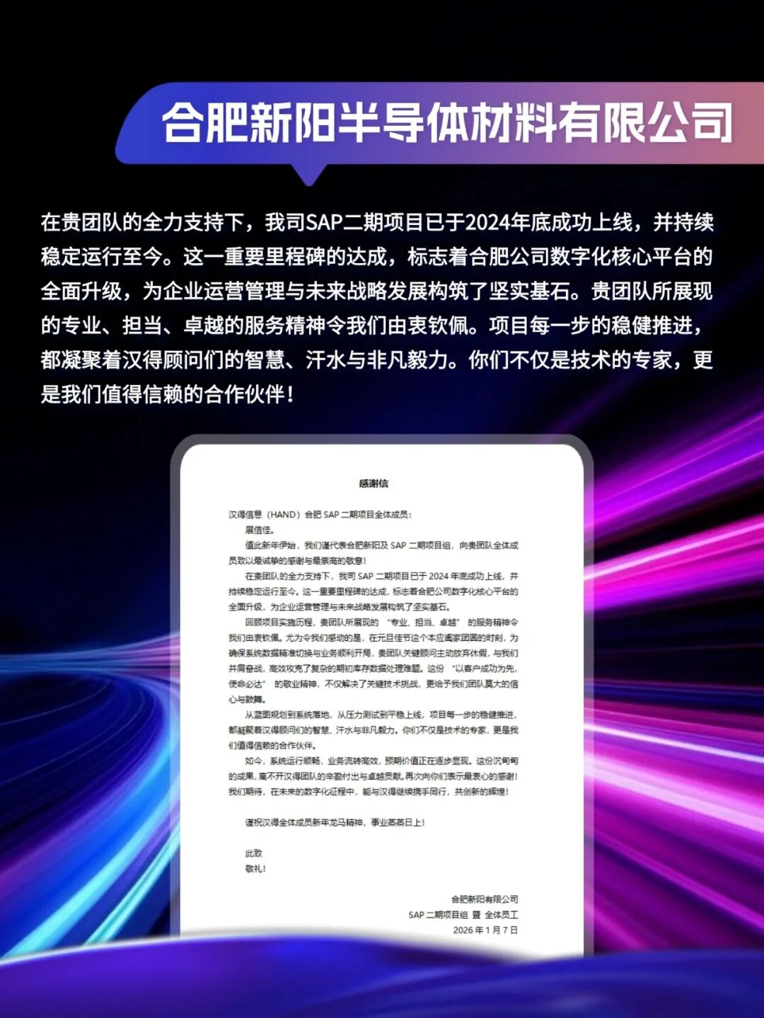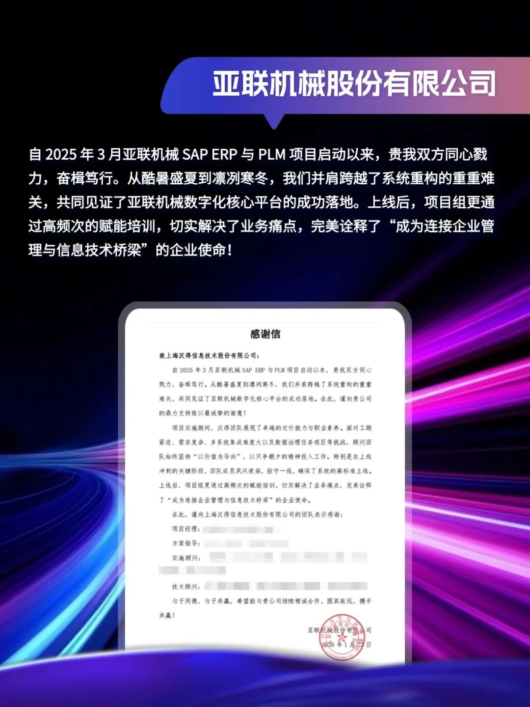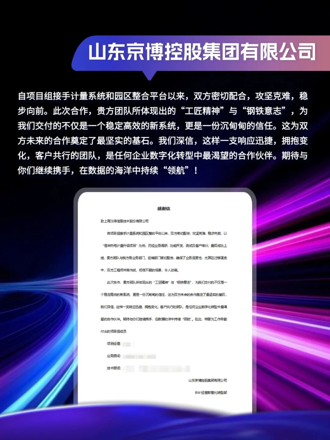 客户感谢信|「同」耕数智,「行」向未来!